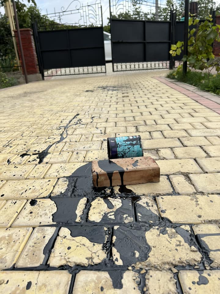 „În această noapte, acasă, la Florești, pavajul din curte a fost stropit de răufăcători cu vopsea neagră.