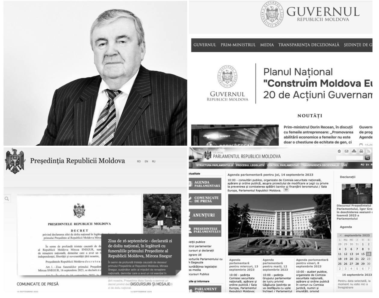 Azi, paginile web ale Guvernului, Președinției, Parlamentului și altor instituții publice își îmbracă straie de doliu, semn al profundului respect pentru Mircea Snegur.