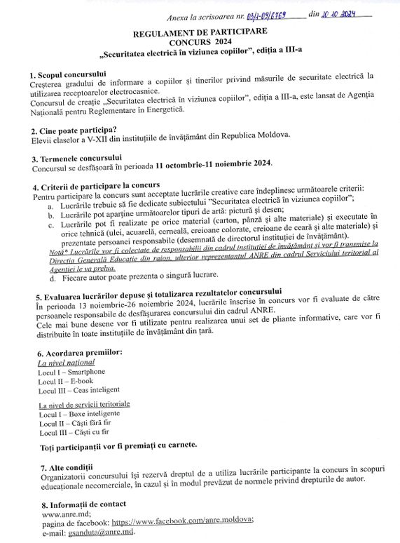 Concursul este deschis pentru elevii claselor V-XII și se va desfășura în perioada 11 octombrie - 11 noiembrie 2024. În perioada 13 noiembrie - 26 noiembrie 2024, lucrările înscrise în concurs vor fi evaluate de către persoanele responsabile de desfășurarea concursului din cadrul ANRE.