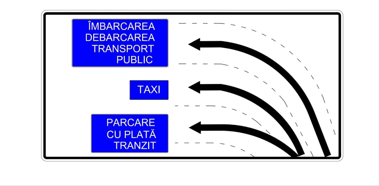 Circulația rutieră pe banda trei va fi destinată mijloacelor de transport ce urmăresc accesul la parcarea aeroportului sau deplasarea pe direcția ieșire de pe perimetrul aeroportului.
