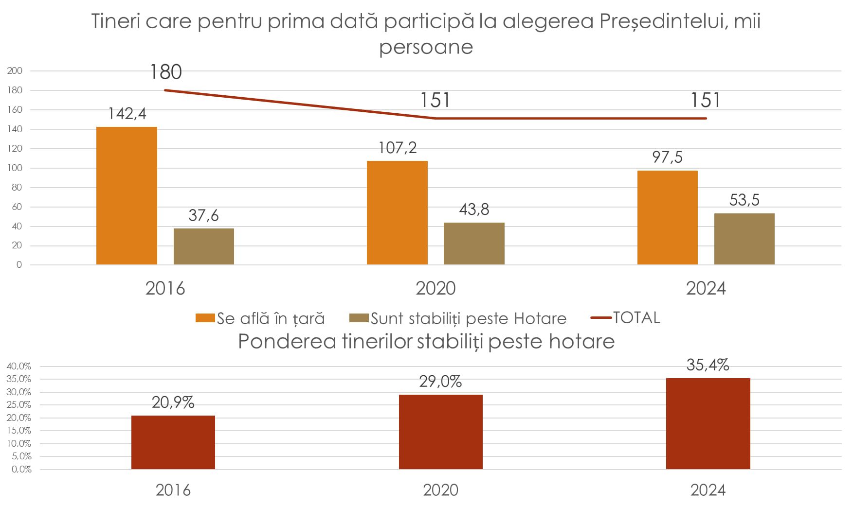 Conform datelor prezentate, acum opt ani, la prezidențialele din 2016, 180 de mii tineri au putut să participe pentru prima dată la alegeri. 142,4 mii dintre aceștia se aflau în acel moment în țară, în timp ce 37,6 mii erau stabiliți peste hotare. De atunci, numărul celor din urmă a crescut constant.
