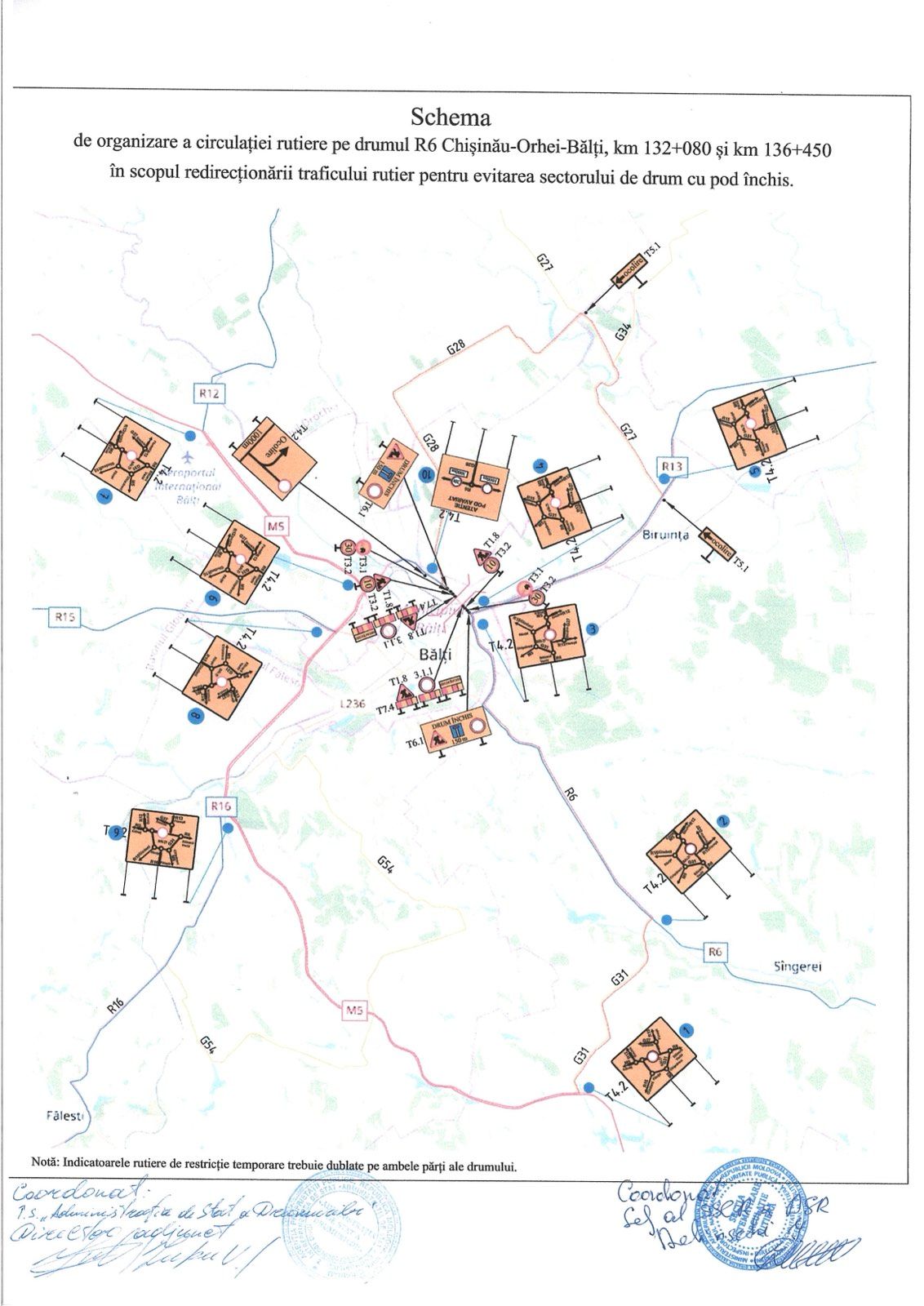 Totodată, în ceea ce privește autovehiculele de mare tonaj, circulația acestora va fi redirecționată pe drumurile publice naționale, „pentru a evita intensificarea traficului în municipiul Bălți pe durata execuției lucrărilor de artă”.