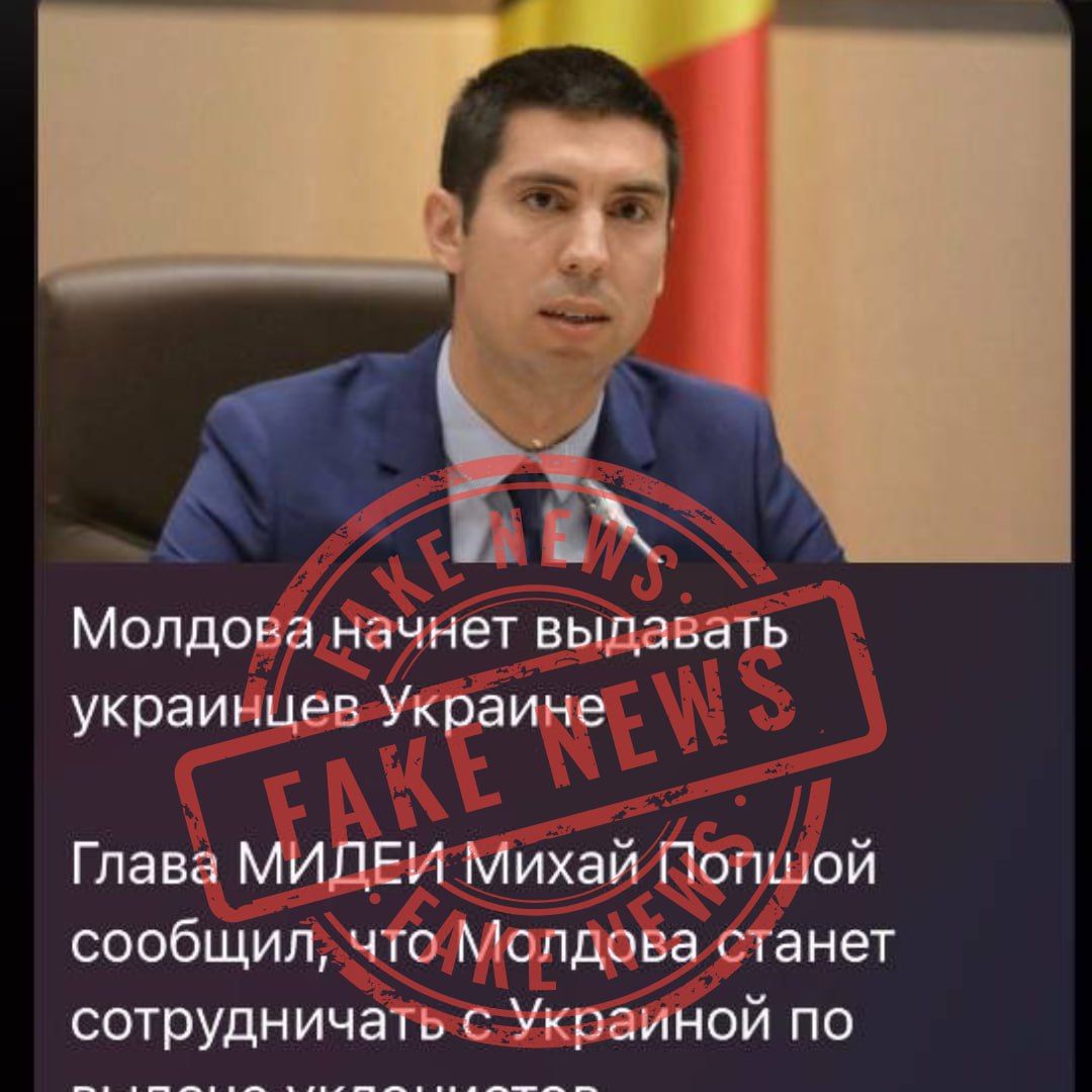 Chișinăul a dezmințit astăzi un nou fals, lansat în mediul online. De această dată, ținta dezinformărilor este șeful diplomației moldovenești, Mihai Popșoi. Mai exact, pe mai multe canale de Telegram pro-ruse a apărut informația precum că Popșoi ar fi declarat că R. Moldova și Ucraina vor colabora în vederea extrădării bărbaților ucraineni care au fugit de război.