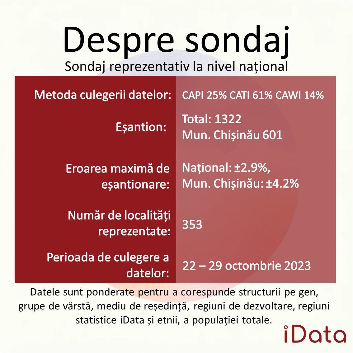 Sondajul a fost realizat în perioada 22-29 octombrie, pe un eșantion de 1.322 de persoane, marja de eroare fiind de +-2,9%, în 353 de localități.