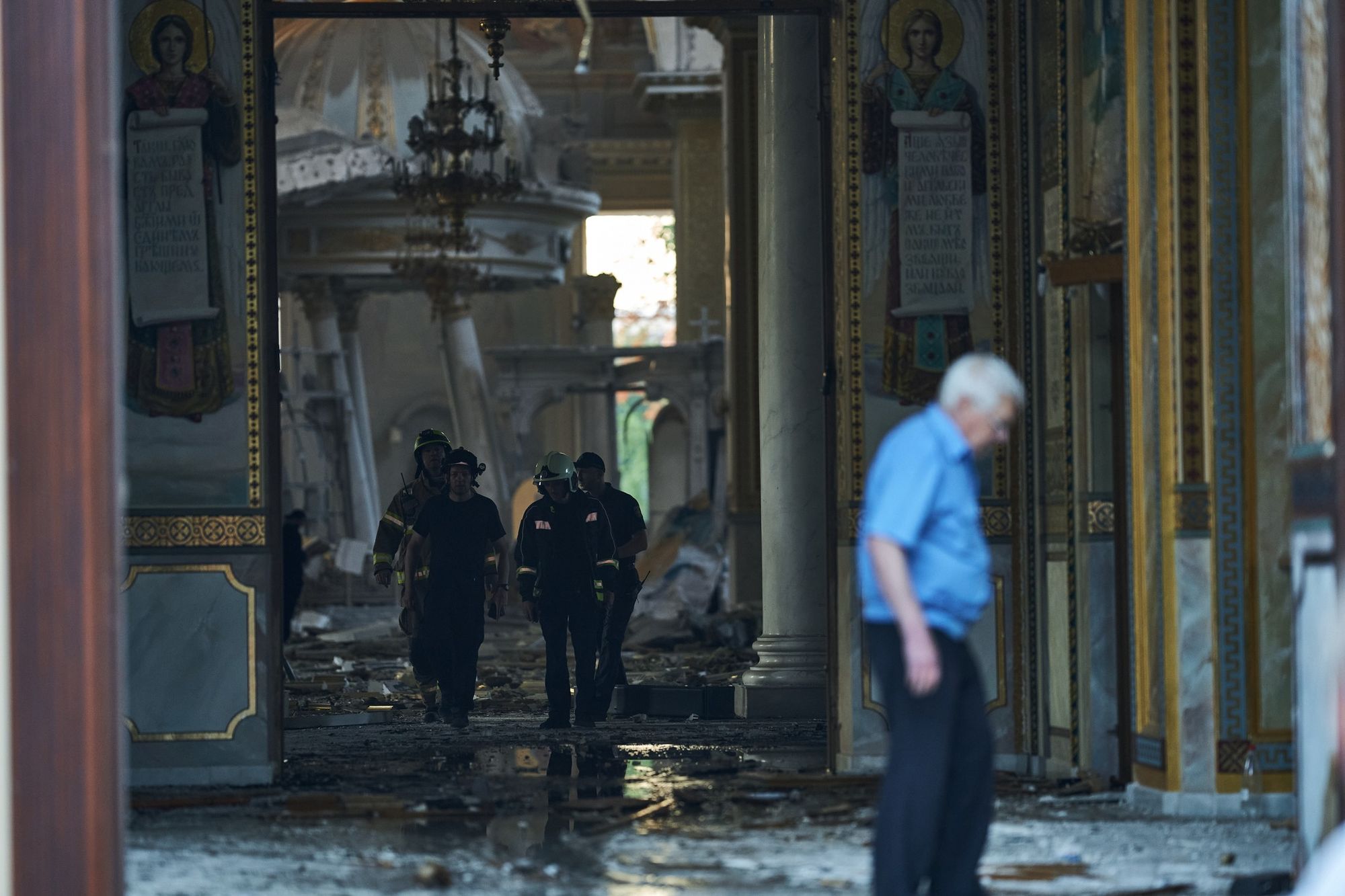 Catedrala Spaso-Preobrajenski („Schimbarea la Faţă a Mântuitorului” - n. red.), cea mai mare biserică ortodoxă din Odesa, care aparține Bisericii Ortodoxe Ucrainene a Patriarhiei Moscovei, a fost puternic avariată. Aceasta este al cincilea atac asupra regiunii de când a fost aruncat în aer tronsonul podului din Crimeea și a fost reziliat acordul privind cerealele ucrainene.